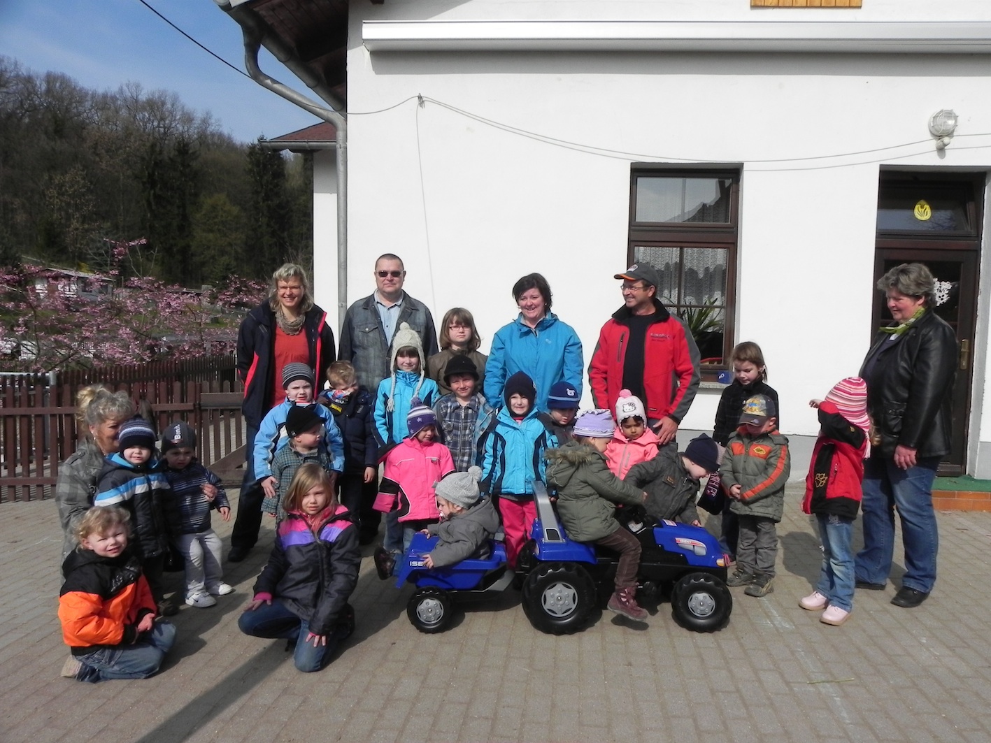 Überraschungen zu Ostern Zum jährlichen Frühjahrsfest der Lauchaer Firma Krämer Motorgeräte fand wieder ein Rasentraktorrennen über einen festgelegten Parcours statt. Die ersten drei Plätze wurden prämiert. Die preise gehen jeweils an die Kindereinrichtung der Gemeinde des Teilnehmers. Für die evangelische Kindertagesstätte Eckartsberga nahm Thomas Wettig aus Lißdorf an dem Rennen teil. Er hat zwar keine kleinen Kinder, wollte aber den Kindern der evangelischen Kita eine Freude bereiten. Seine Rennzeit war so gut, dass er den dritten Platz belegte. Dafür erhielt unsere Kita einen Traktor mit kleinem Hänger als Preis überreicht. Am 3. April konnte der Traktor durch Bernd Vielmuth, im Beisein von Thomas Wettig, den Kindern überreicht werden. Die Freude war riesengroß, und jeder wollte natürlich zuerst fahren. Ein ganz herzliches Dankeschön an die Firma Krämer und an Thomas Wettig! Ostereiersuchen Auch in diesem Jahr meinte es der Osterhase lieb mit allen Grossen und Kleinen aus unserer Einrichtung. Die liebevoll gebastelten Osterkörbchen hatte der Osterhase auf unserem Freigelände mit Geschick, Geduld und Mühe versteckt. Es war gar nicht so leicht gleich ein Körbchen zu finden. Nach langem Suchen hatte dann doch jedes Kind ein Österkörbchen gefunden und konnte es mit nach Hause nehmen. Wir möchten in diesem Zusammenhang an unser diesjähriges Sommerfest erinnern, welches am 23.06.2012 stattfindet. Das diesjährige Motto lautet „Erde, Wasser, Luft und Feuer“. Dazu laden wir alle ganz herzlich ein. Katrin Mosch, Leiterin der ev. Kita