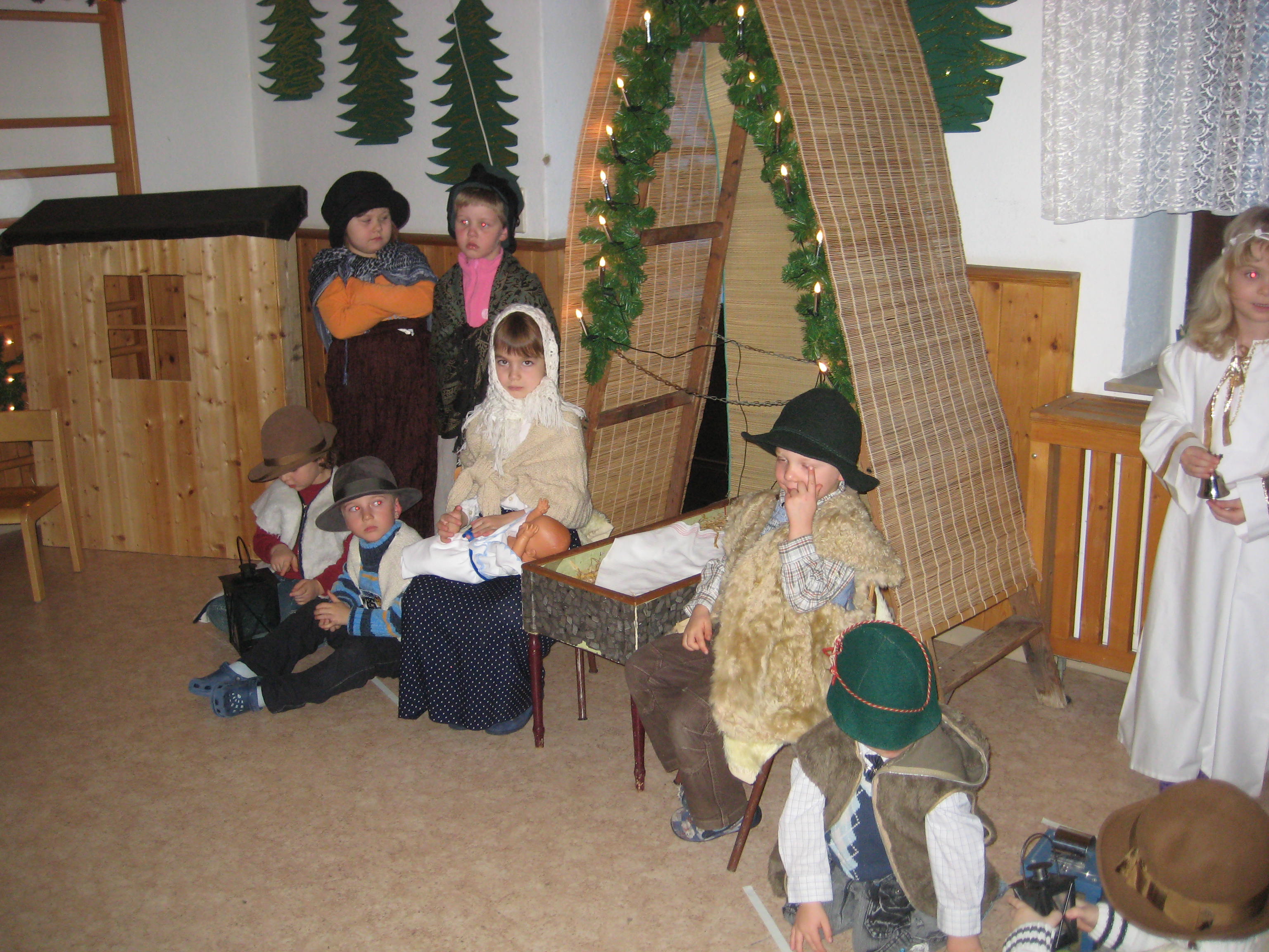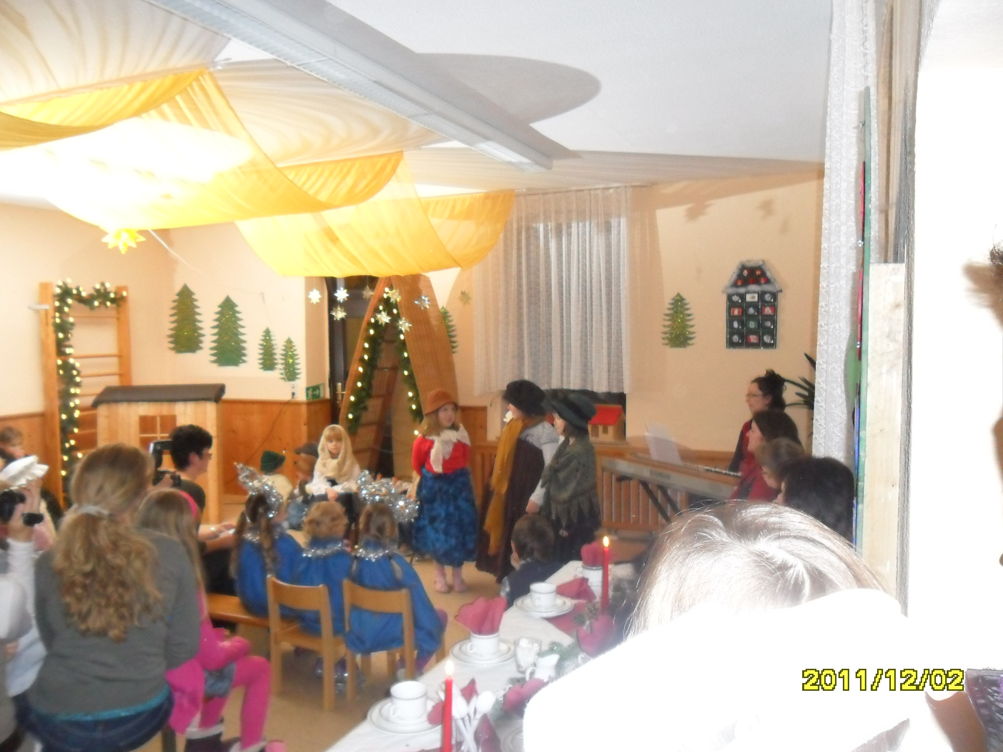 Weihnachtsfeier in der ev. Kita Am Nachmittag des 3. Dezember fand in unserer ev. Kita wieder die jährliche Weihnachtsfeier für die Eltern und Großeltern statt. Die Kinder führten ein wunderschönes Anschließend gab es Kaffeetrinken - einige Mütter hatten Kuchen gebacken und viele fleißige Helferinnen waren in der Küche am Werk. Auch das war perfekt organisiert und lief wie am Schnürchen. Wie immer sangen wir noch einige Weihnachtslieder, ehe sich so nach und nach alle wieder auf den Heimweg machten. Allen, die aufopferungsvoll vorbereitet und mitgeholfen haben, sei ganz herzlich gedankt! Pfrn. Bettina Plötner-Walter