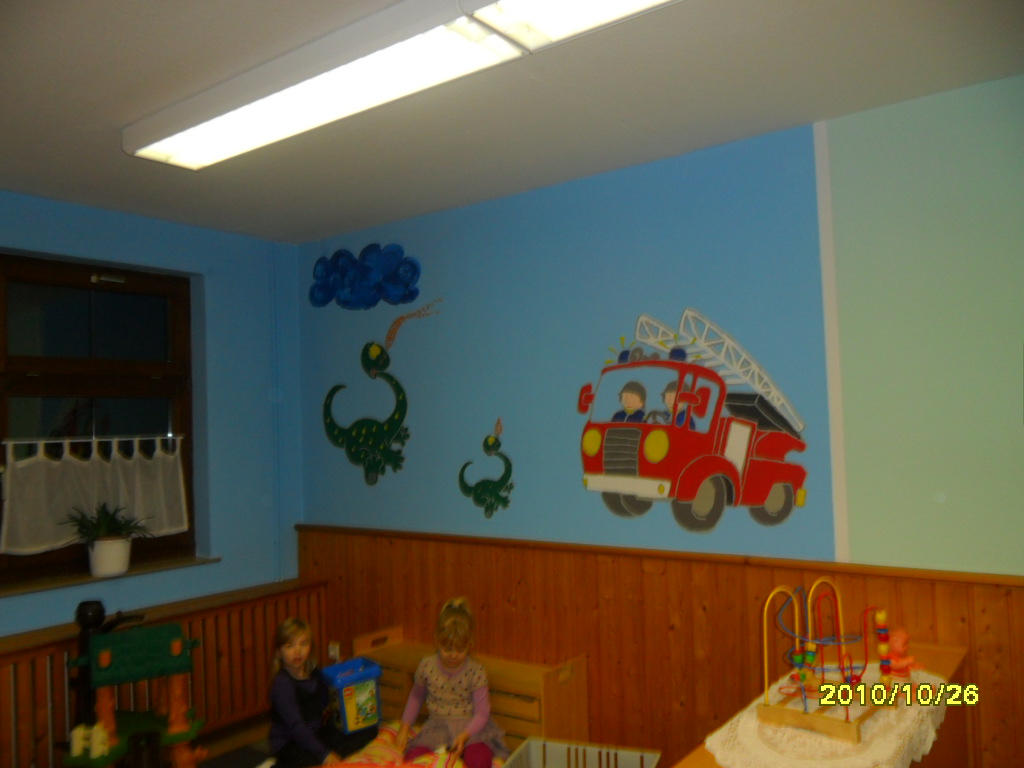 In der letzten Zeit hat sich unsere Kita erfreulich verändert – manches ist erneuert bzw. neu gebaut: Einer der Gruppenräume hat eine neue Wandgestaltung bekommen und die Auffahrt ist fertig. Damit nicht genug, bekommt auch in der nächsten Zeit der andere Gruppenraum einen neuen Fußboden und einen neuen Anstrich. Und eine schöne Weihnachtsfeier gab es auch: Kita-Raum schön neu